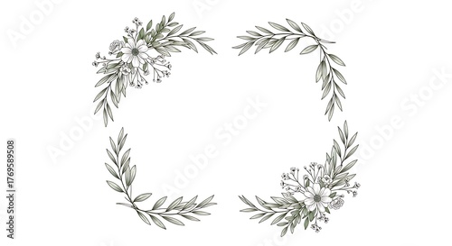 Obraz premium Elegant Floral Frame with Delicate Leaves and Blossoms for Invitations.