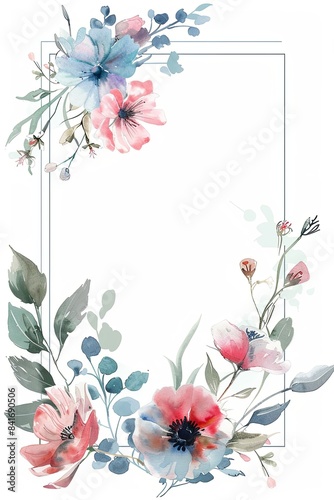 Naklejka premium Elegant floral greeting cards,illustration of minimal flowers on rectangular border.