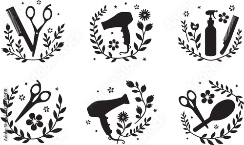 © VectoraVerse, Naklejka premium Elegant Floral Hair Stylist SVG Bundle | Barber & Salon Tools Clipart