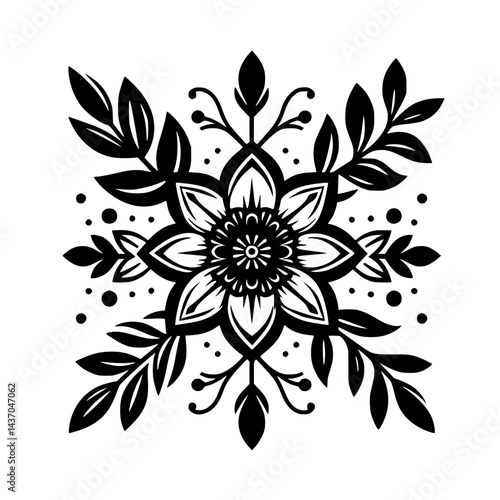 Fototapeta premium Elegant Floral Mandala: Black & White Design, Decorative Element