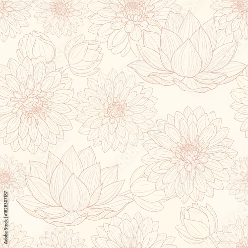 Fototapeta premium Elegant Floral Pattern in Soft Beige Tones Decorative Flowers Seamless Design...