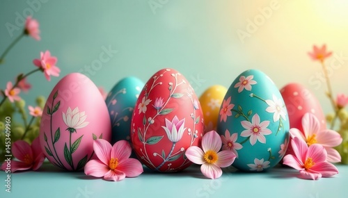 Fototapeta premium Elegant floral silhouettes adorn intricately designed Easter eggs , pattern,...