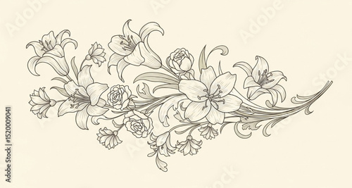 Fototapeta premium Elegant Floral Swirl with Lilies and Roses | Botanical Vector Illustration...