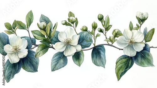 Fototapeta premium Elegant Floral Wall Hanging with White Blooms and Green Foliage
