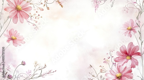 © Dragon42, Naklejka premium Elegant Floral Watercolor Background with Pink Daisies and Delicate Branches for Invitations and Artistic Designs