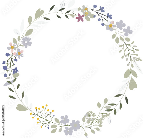Fototapeta premium Elegant Floral Wreath Frame Delicate Spring Blossoms Circle