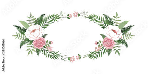 © VektorDesign, Fototapeta premium Elegant floral wreath with soft roses