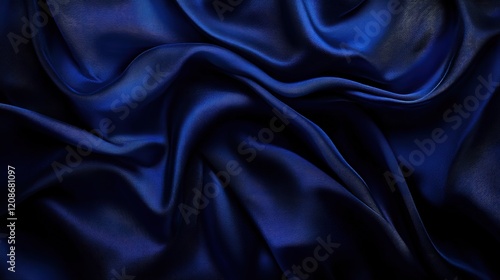 © IsabellaNoviDwita, Obraz premium Elegant flowing dark blue silk fabric with smooth texture and subtle waves and folds