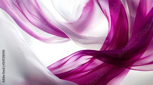 Fototapeta premium Elegant flowing fabric in shades of purple and white. Delicate, soft, and smooth, creating a sense of movement and fluidity