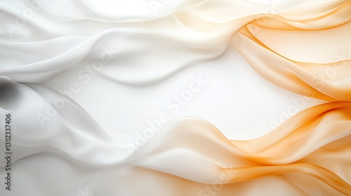 Obraz premium Elegant flowing fabric waves in soft white and orange tones, creating a...