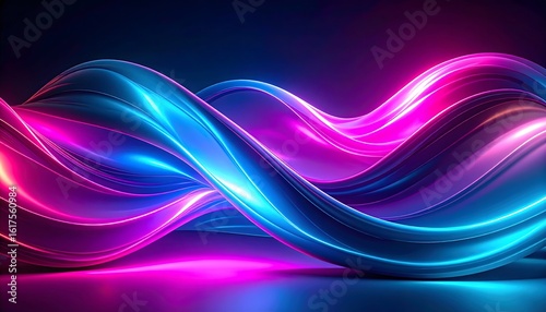 © YNG, Obraz premium Elegant flowing layered shapes with neon glow