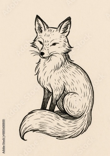 © Rawpixel.com, Fototapeta premium Elegant fox sketch illustration