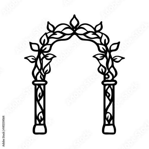 © Victoria, Obraz premium Elegant garden arch icon with intertwined leaves, decorative concept