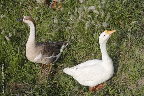 © Asif, Obraz premium Elegant Geese in a Verdant Meadow