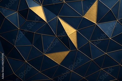 Fototapeta premium Elegant Geometric Abstract Background Navy Blue Triangles with Gold Accents...