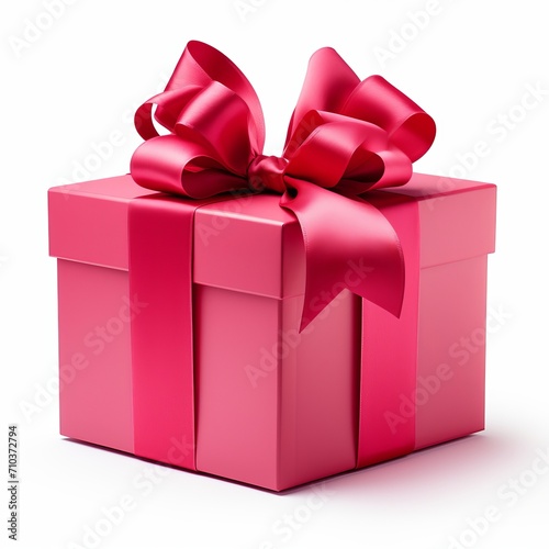 Obraz premium Elegant gift box with decorative ribbon on white background for gifting and celebrations