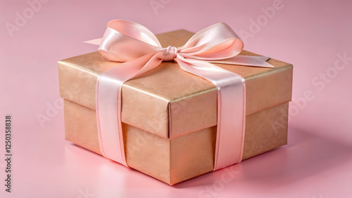 © Anna, Obraz premium Elegant gift box with pink satin ribbon on pastel background.