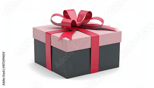 Obraz premium Elegant gift box with red ribbon on white background