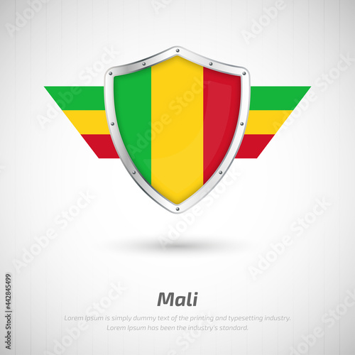 © Yagnik, Fototapeta premium Elegant glossy shield for Mali country with happy independence day greeting background