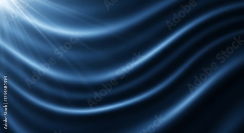 © TheseusStock, Obraz premium Elegant glow with soft blue-white gradient fabric texture, mysterious illuminated dark background with abstract beams for banner design