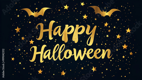 Fototapeta premium Elegant Gold and Black: "Happy Halloween" in sophisticated gold serif...