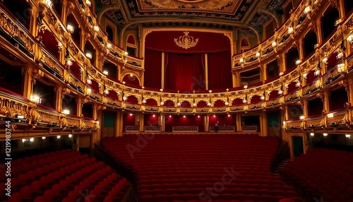 © Harno, Obraz premium Elegant Gold And Red Opera House Auditorium
