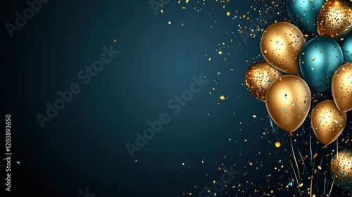 © Royin, Fototapeta premium Elegant Gold and Teal Balloons Celebration