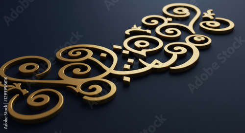 © ikbal, Fototapeta premium Elegant gold calligraphy-inspired swirls creating a decorative Ramadan element (no text)