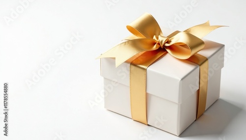 © Withun, Fototapeta premium Elegant gold Christmas gift bow isolated on white background, ribbon, wrapping, christmas