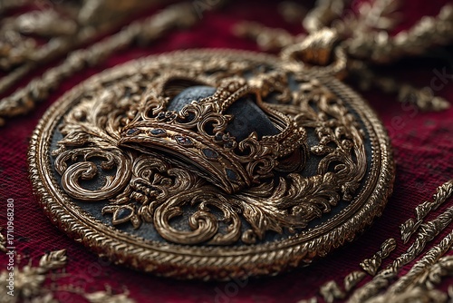 © Ritika, Obraz premium Elegant gold crown medallion with royal details high resolution picture