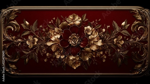 Obraz premium Elegant Gold Floral Ornament on Dark Red Background