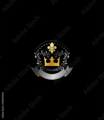 © vladimir, Naklejka premium Elegant gold logo with laurel wreath and justice scales. Perfect for legal offices, attorneys, and professional branding.