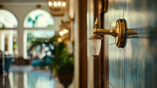 Obraz premium Elegant Gold Wall Lamp In Luxurious Hotel Lobby