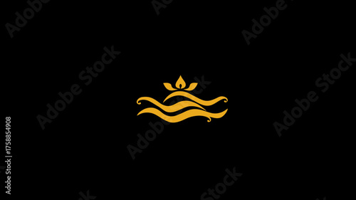 © baehaqi, Obraz premium Elegant golden abstract graphic with fluid waves and stylized flame or petal element on a deep black background