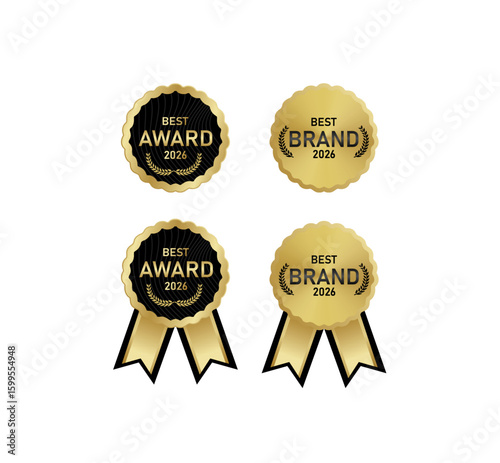 © Gilangartwork, Fototapeta premium Elegant Golden Badges Honoring Top Brands and 2026 Achievements