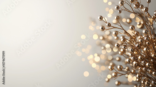 Fototapeta premium Elegant golden branches with shimmering beads create festive atmosphere,...
