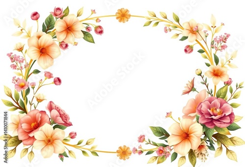 Obraz premium Elegant golden floral frame corner with botanical bouquet illustration,...