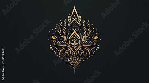 © akiladiba, Obraz premium Elegant Golden Floral Ornament on Dark Background