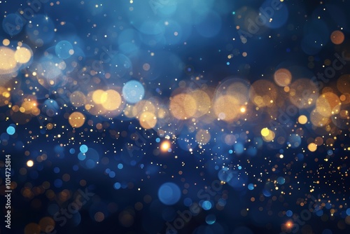 Fototapeta premium Elegant Golden Particles and Bokeh on Midnight Blue for Luxurious New Year's...