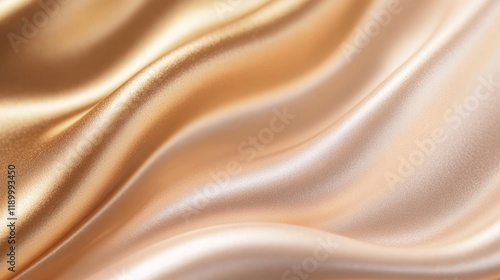 © Futuristictech, Obraz premium Elegant Golden Satin Fabric with Smooth Waves and Textured Flow