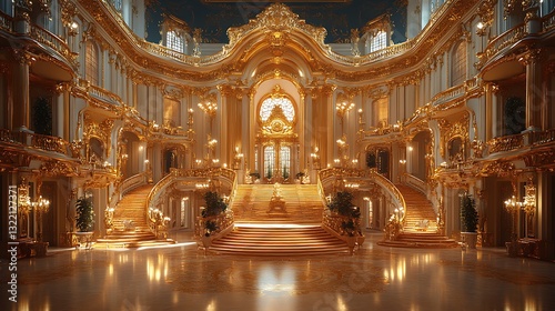 © Sara, Obraz premium Elegant golden stairway with marble steps high resolution picture