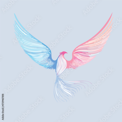Obraz premium Elegant Gradient Phoenix with Flowing Wings – AI Generated