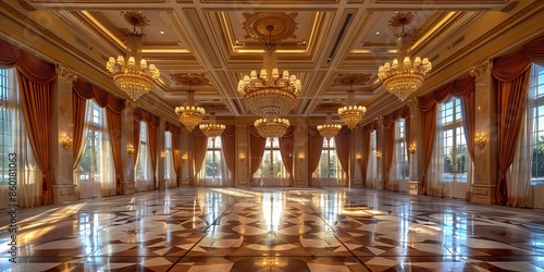 © vectorizer88, Obraz premium Elegant Grand Ballroom with Luxurious Chandelier Lighting and Opulent Design