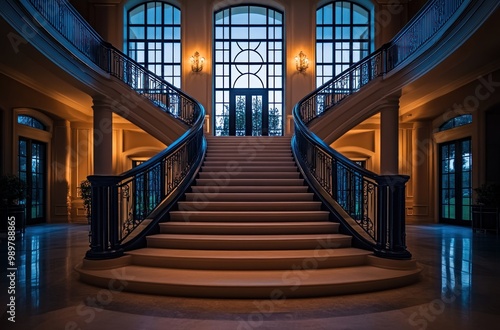 © BerkahStock, Obraz premium Elegant Grand Staircase in a Luxurious Mansion