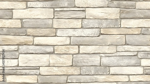 © Sam-th, Obraz premium Elegant Gray and White Stone Wall Texture with Rectangular Pattern for Interior Design and Architecture