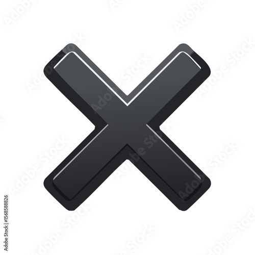 © Nikita, Fototapeta premium Elegant Gray Cross Icon with Subtle Glossy Edge on Black Background for Negative Concepts