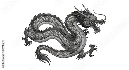 © Bidinstudio, Obraz premium Elegant gray dragon illustration design