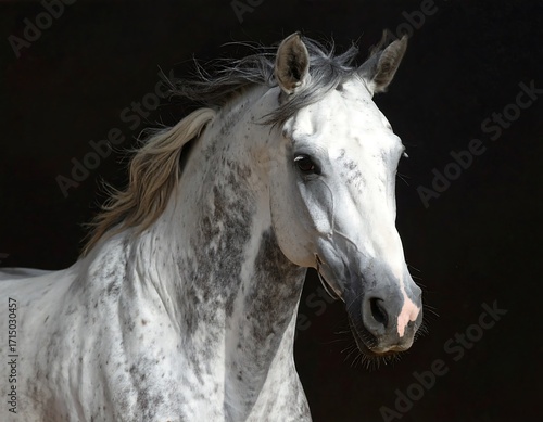 Obraz premium Elegant Gray Horse Portrait Against Black Background