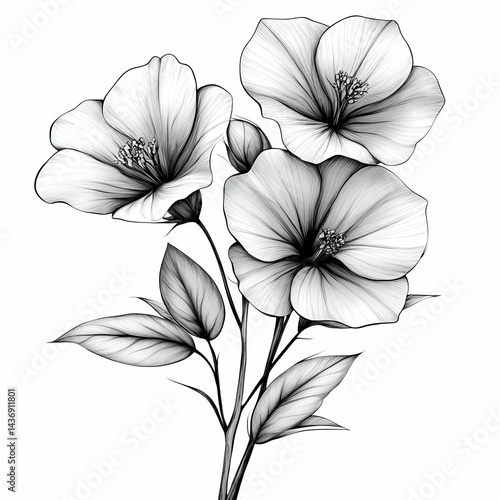 © Abuhumed, Fototapeta premium Elegant grayscale flower illustration