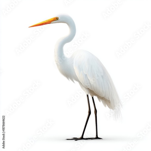 © Yothin, Fototapeta premium Elegant Great Egret Standing Tall White Plumage Black Legs Orange Beak